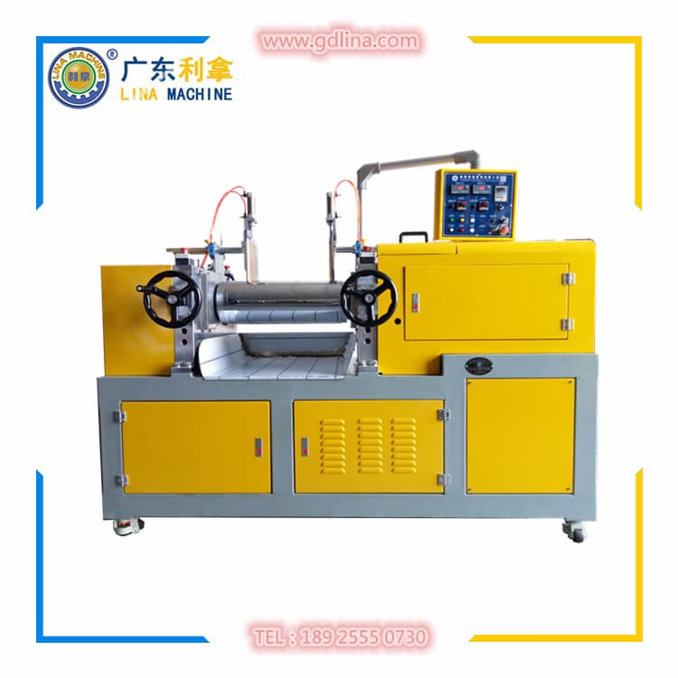 主要工作部件是兩異向向內旋轉的中空輥筒或鉆孔輥筒,裝置在操作者一面的稱作前輥,可通過手動或電動作水平前后移動,借以調節輥距,適應操作要求;后輥則是固定的,不能作前后移動。兩輥筒大小一般相同,各以不同速度相對回轉,生膠或膠料隨著輥筒的轉動被卷入兩輥間隙,受強烈剪切作用而達到塑煉或混煉的目的。開煉機也用于塑料加工等部門中。